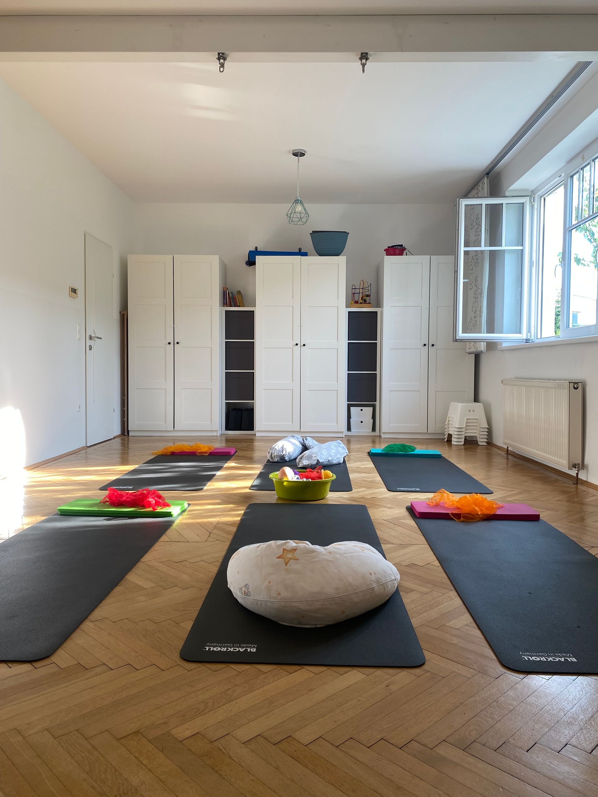 Die Indoor-Kurse finden in Kleingruppen im "Augustinergarten. Praxis für Kinder und Familien" (Augustinergarten 15, 2100 Korneuburg) statt. Im Trainingsraum gibt es Gymnastikmatten für Sie. Bitte bringen Sie ein Handtuch als Unterlage für die Gymnastikmatte mit.